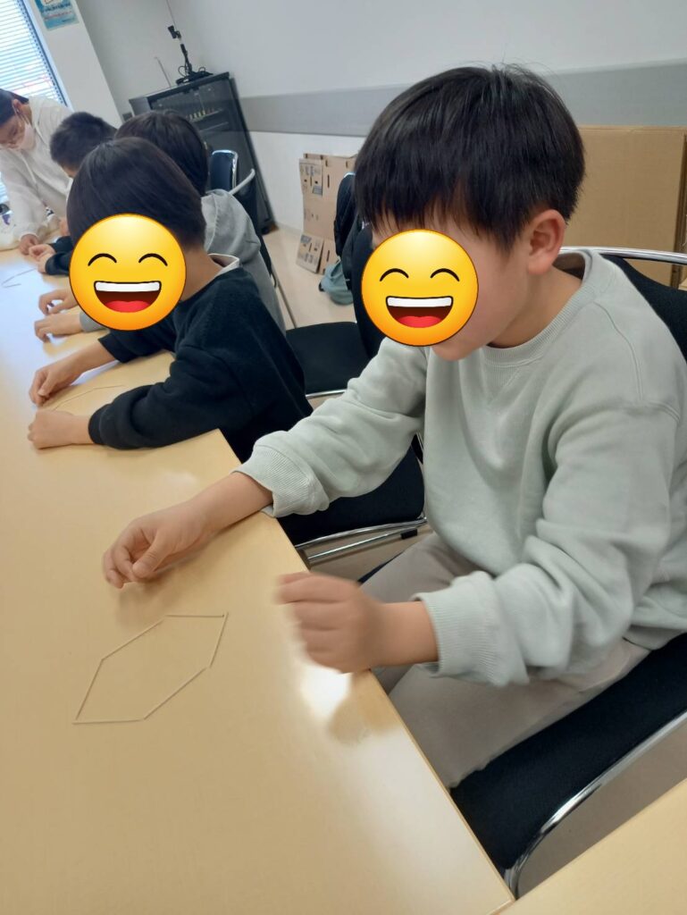 机の脚は段ボール箱を加工して三角形にすることで強度をあげています。少し大がかりな工作で、力がいったり紐を結ぶ必要があったりで難しい工程があって完成まではいたりませんでしたが、楽しく工作ができたと思います。また続きをしますのでそれまで保管をお願いします。